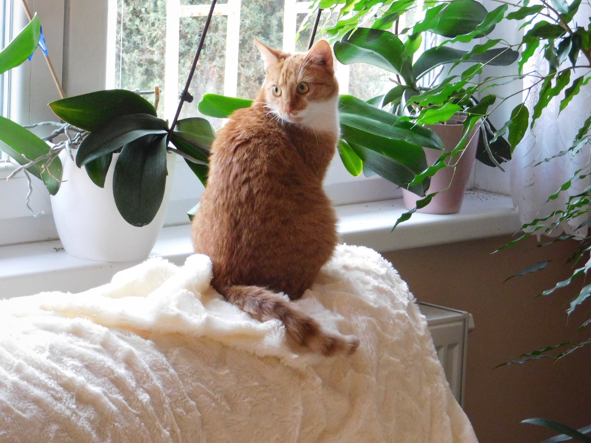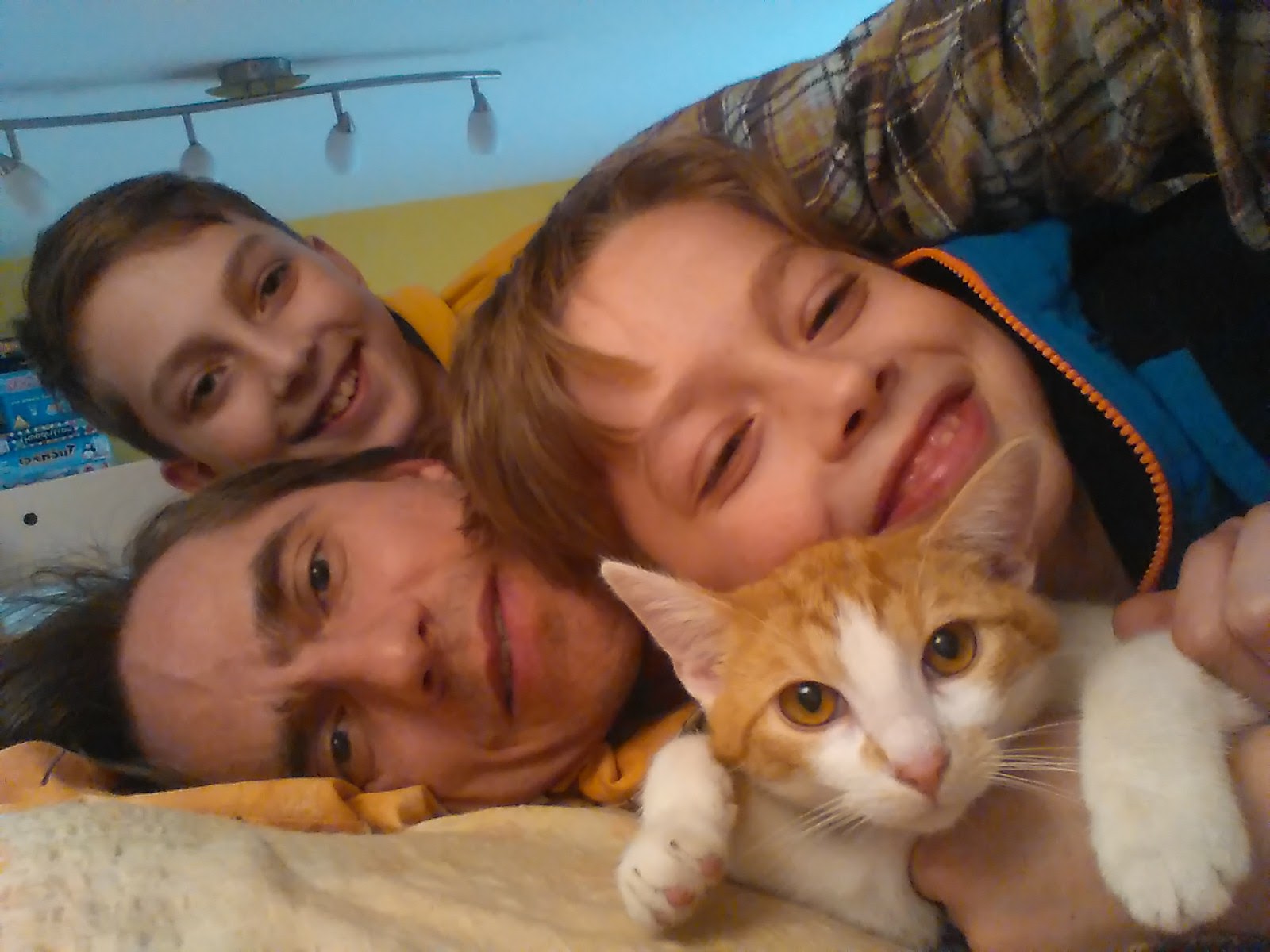 A pak - ani nevím jak dlouho potom, protože čas jaksi běžel mimo nás - to byla sama Bamboocha, kdo k nám přivedla kotě. Seděla u balkonových dveří a kluci si všimli zrzečka venku. Byla zima a my šli zrovna na hřbitov zapálit mámě svíčku. A kotě popobíhalo za námi celou cestu tam i zpět. Tak jsme ho vzali dovnitř. Chudáčku! Až doma jsme viděli, jak je vychrtlé a špinavé. A to byl Antares. Zrzavobílý veleobr.